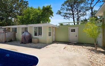 The back yard boasts a wonderful grass area, pool with a brand new liner, a private Zen Garden, and the Summer Kitchen. There is more private outdoor space here than most homes which is great for families who enjoy being outside in the wonderful Gulf Breeze Florida weather.